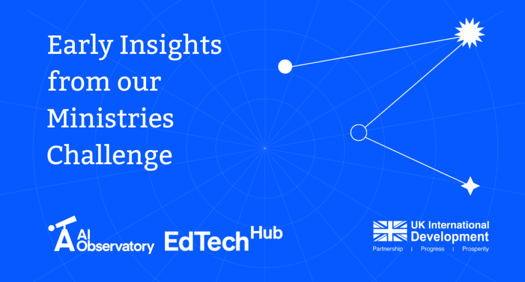 The Ministries of Education AI Challenge runs from July 2025 to March 2026. Follow along with our learnings by signing up to the EdTech Hub newsletter and selecting “AI”.