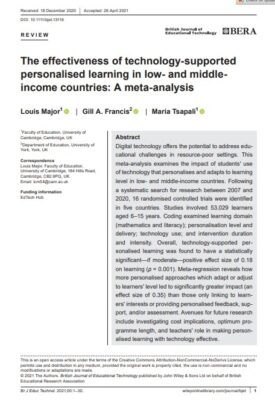 There is limited research on the effectiveness of using digital personalised learning (DPL) tools in low- and middle-income country (LMIC) classrooms to improve early grade literacy and numeracy.