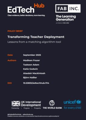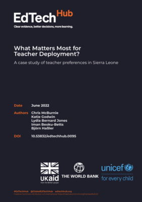 In 2024, the Government of Sierra Leone used a GIS-supported preference matching algorithm to improve teacher allocation. This mixed-methods study built evidence on the impact of the centralised, tech-enabled teacher deployment process on decision-making, equitable teacher allocation, and achievement of policy goals.