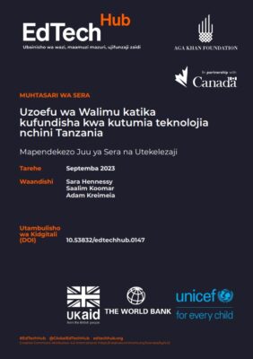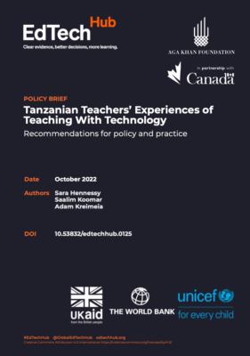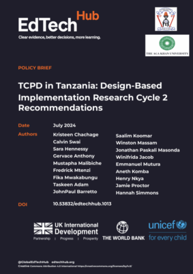 This study aims to address these evidence gaps through implementation research and participatory methods. EdTech Hub worked in partnership with Tanzania Institute for Education (TIE), Aga Khan University Institute for Educational Development (AKU-IED), and Aga Khan Foundation (AKF).