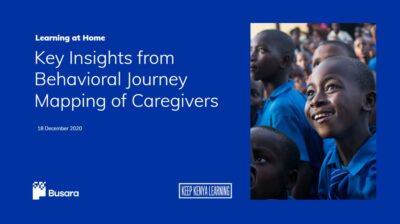 • Keep Kenya Learning  is testing its approach on over 300 caregivers across 3 ‘personas’ with varied income levels and geographic backgrounds.