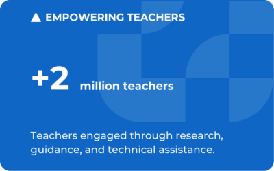Through our work with ministries, governments, and implementers we have engaged an estimated 2 million teachers.