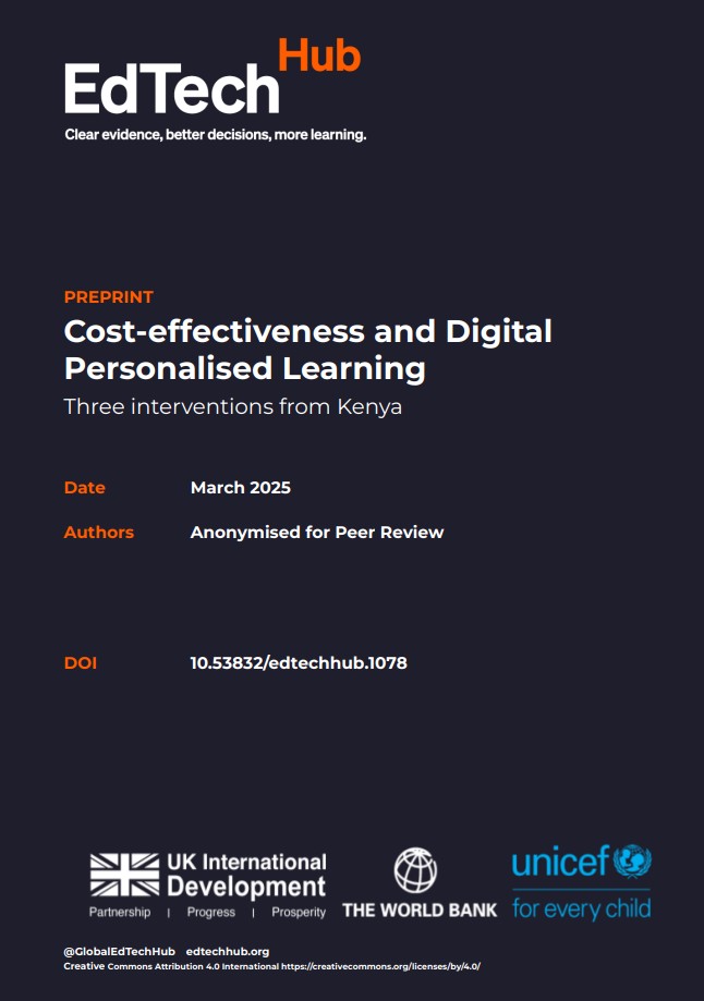 Anonymised for Peer Review. (2025). Cost-effectiveness of digital personalised learning: Three interventions from Kenya [Preprint]. EdTech Hub. https://doi.org/10.53832/edtechhub.1078