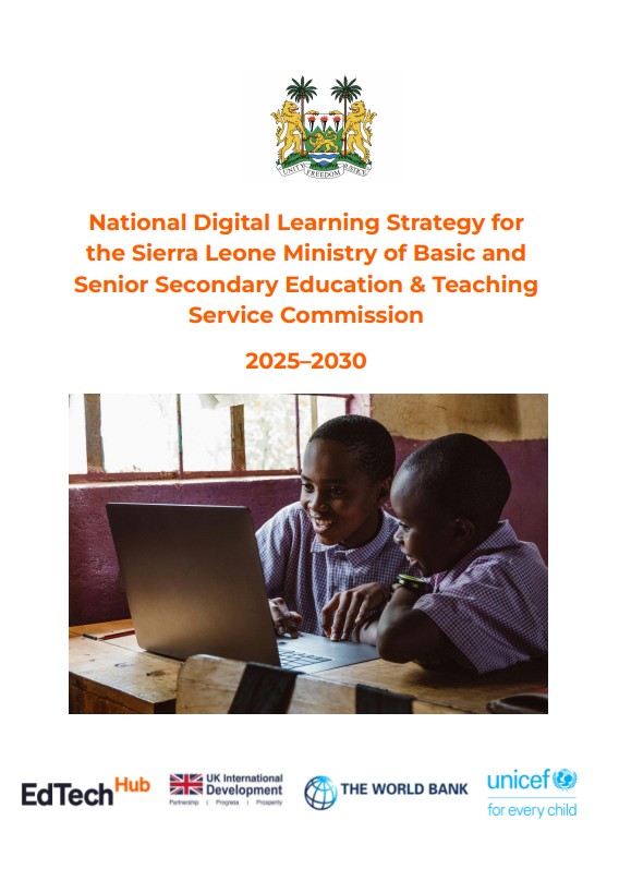 Sierra Leone launches first-ever National Digital Learning Strategy The Ministry of Basic and Senior Secondary Education (MBSSE) and the Teaching Service Commission (TSC) are pleased to announce the launch of Sierra Leone’s first-ever National Digital Learning Strategy (NDLS) — a groundbreaking framework aimed at leveraging educational technology to improve teaching and learning in Sierra Leone. Developed through a collaborative and consultative process with representatives from the MBSSE, TSC, Ministry of Tertiary and Higher Education (MTHE), Presidential Delivery Unit (PDU), and Ministry of Communications, Technology, and Innovation (MoCTI) and shaped by insights from students, teachers, district leaders and officials, the NDLS outlines key priorities related to addressing the digital divide in Sierra Leone; improving teachers’ digital capabilities; strengthening learners’ access to technology; improving access to localized content, and improving coordination mechanisms between all EdTech stakeholders. EdTech Hub is a proud partner of this work alongside the UK Foreign, Commonwealth and Development Office (FCDO), UNICEF, the World Bank, and other collaborators. This collaboration included technical guidance and support throughout the process. The NDLS represents a collective commitment to transforming education and building future-ready learners and educators.