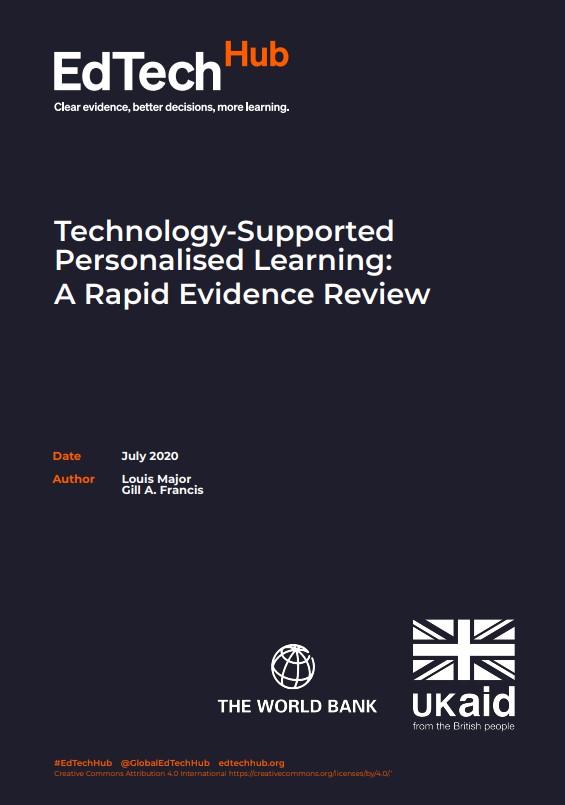 Major, L., & Francis, G. A. (2020). Technology-Supported Personalised Learning: A Rapid Evidence Review (Rapid Evidence Review No. 1). EdTech Hub. https://doi.org/10.5281/zenodo.4556925